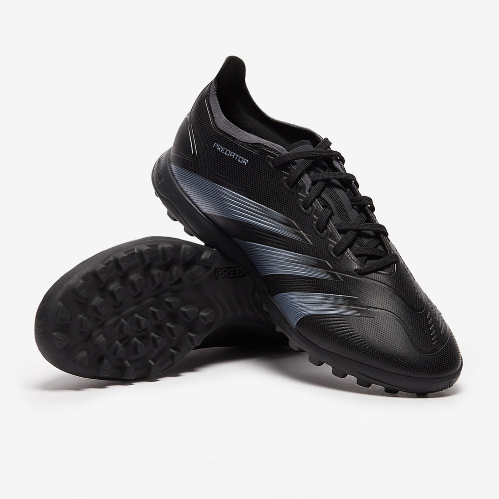 When the goal's in your sights, adidas Predator converts pressure into pinpoint accuracy. Covered in a 3D texture and featuring grippy Strikescale fins on its medial side, the Hybridfeel upper on these League football boots is optimised for accurate shooting. Down below, a lug rubber outsole offers stability on artificial turf courts.