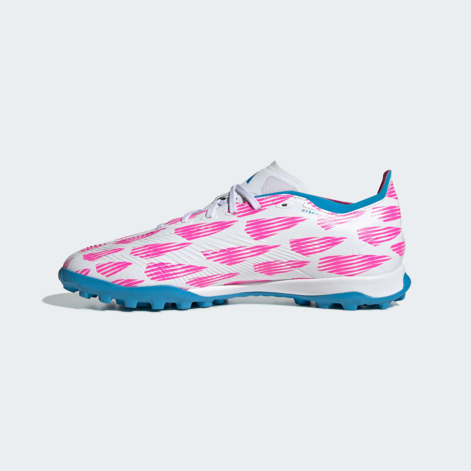 When the goal's in your sights, adidas Predator converts pressure into pinpoint accuracy. Covered in a 3D texture and featuring grippy Strikescale fins on its medial side, the Hybridfeel upper on these League football boots is optimised for accurate shooting. Down below, a lug rubber outsole offers stability on artificial turf courts.