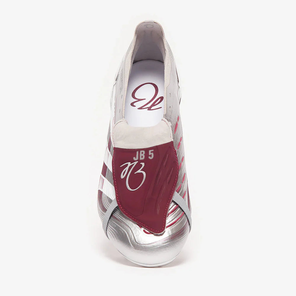 Hunt silverware like Jude wearing adidas Predator Elite Tongue x Bellingham FG football boots in Silver Met/Legacy Burgundy/Maroon. Symbolising the Real Madrid star’s relentless pursuit of trophies, this special-edition “Chrome Dream” colourway features signature JB branding at the tongue, insole, and heel.