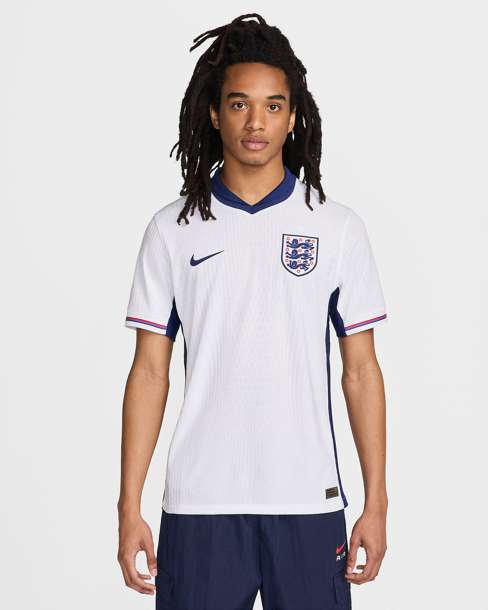 With a national squad as historic as England, tradition must be honoured. Their 2024 Home kit remains, as it always has, white. We accented the classic white kit, a staple going back to 1872, with striped sleeve cuffs and neck tape, honouring the singular style of the man who earned them their star in 1966.