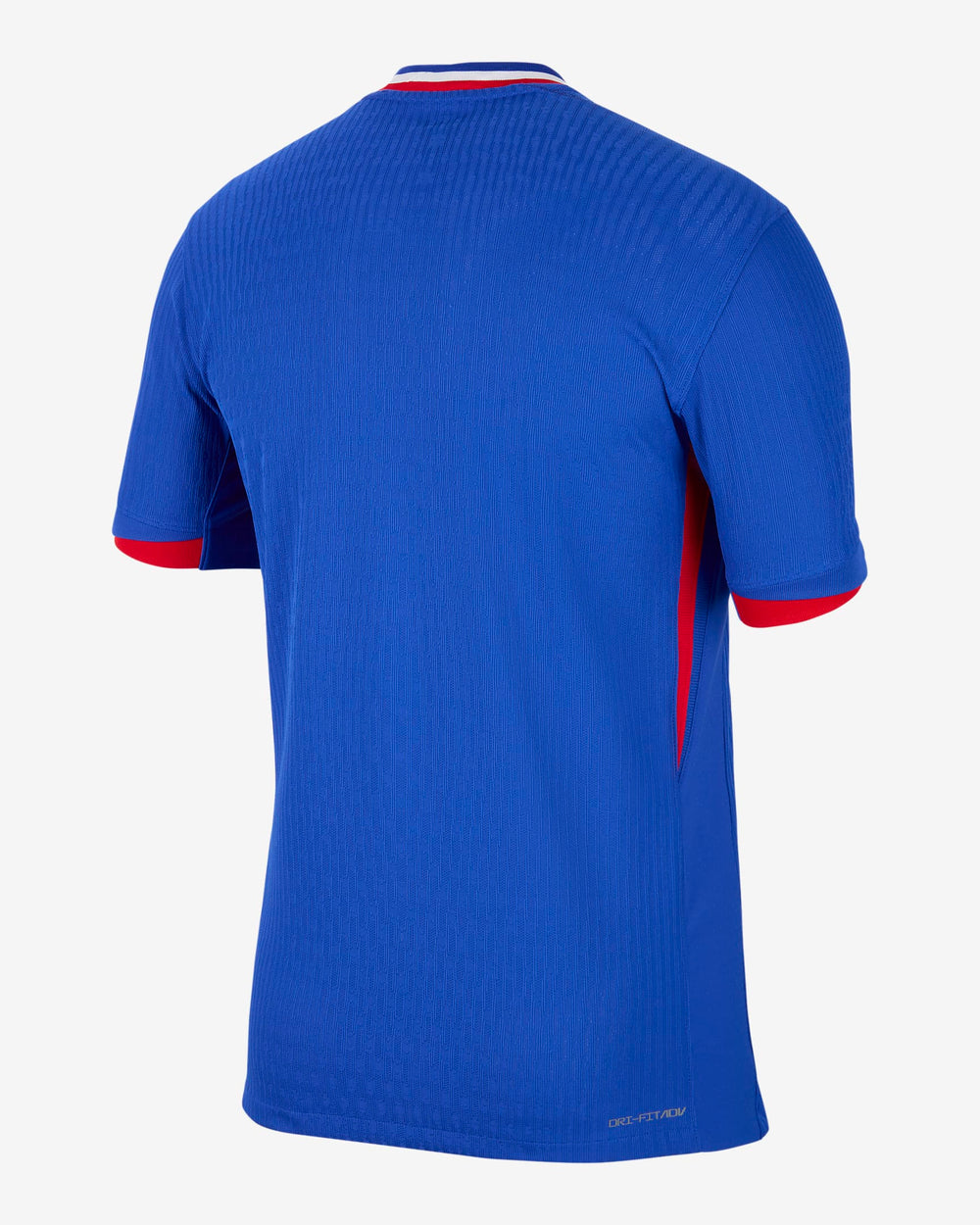 The FFF 2024 Home Kit takes inspiration from classic France shirts of the 1960s while also celebrating the vibrant and diverse culture of the country. An oversized cockerel on the chest and the tri-colour French flag ribbing leave no doubt about which country this shirt represents.