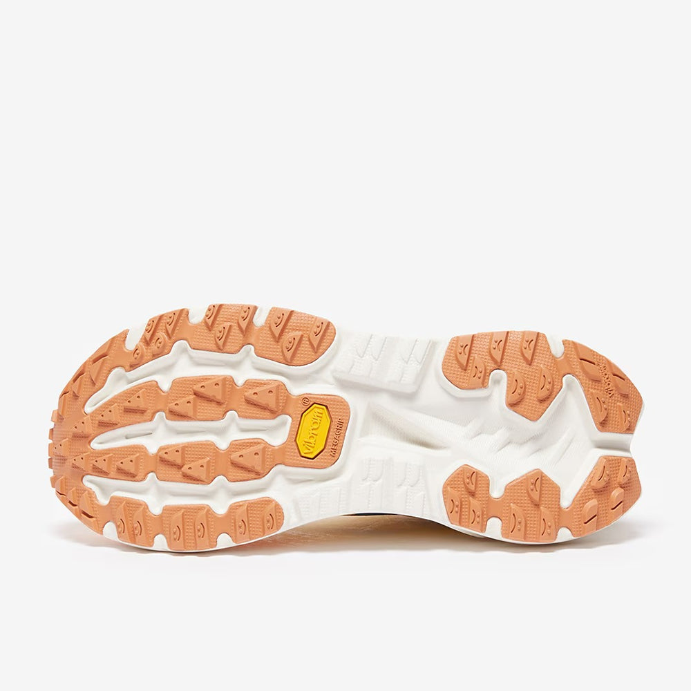 The all-important grip in the HOKA Mafate X is created by zonal Vibram megagrip and 3.5mm lugs that give excellent traction across gravel, and hard technical surfaces.