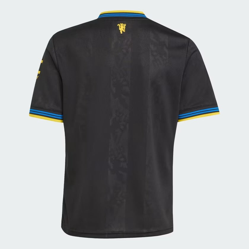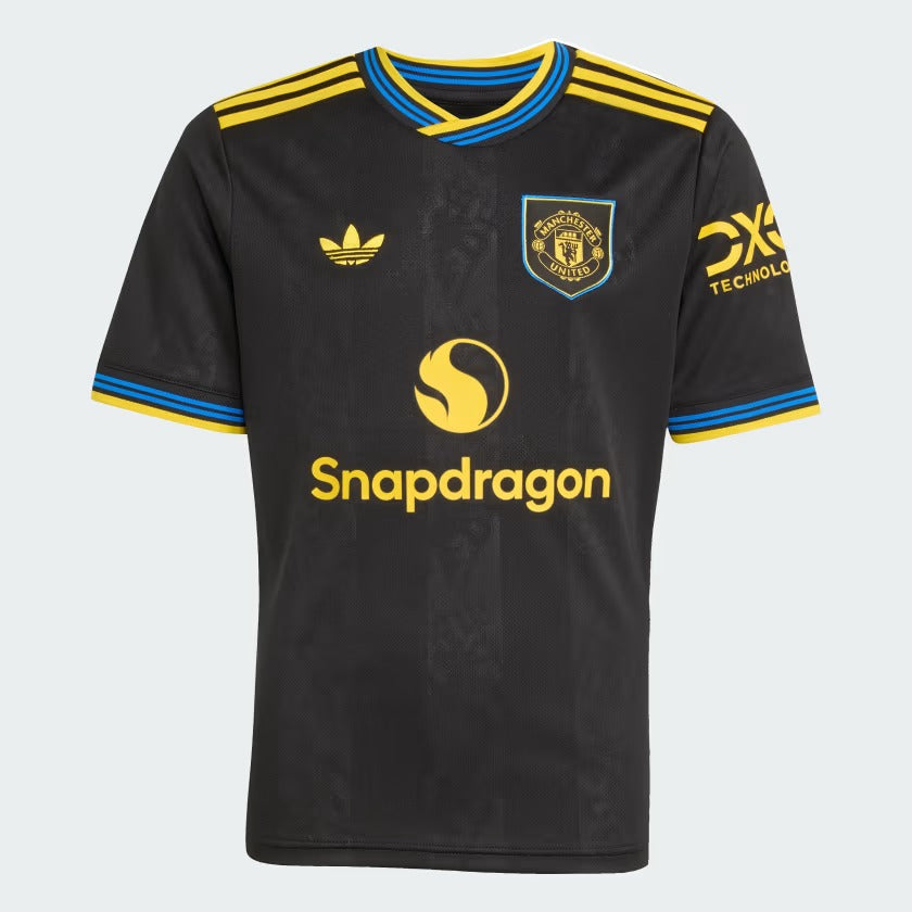 Ice-cold Manchester United style finds a fresh look. It won't take fans long to see the influence of the club's early-'90s adidas snowflake kit on this juniors' jersey. What are new, though, and the metallic finish that gives the red devil badge extra luster. This comfortable shirt employs moisture-managing AEROREADY so fans can stay focused on the soccer.