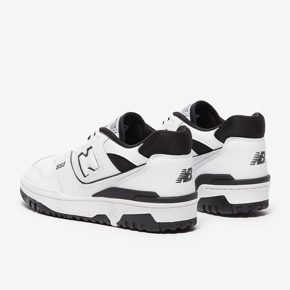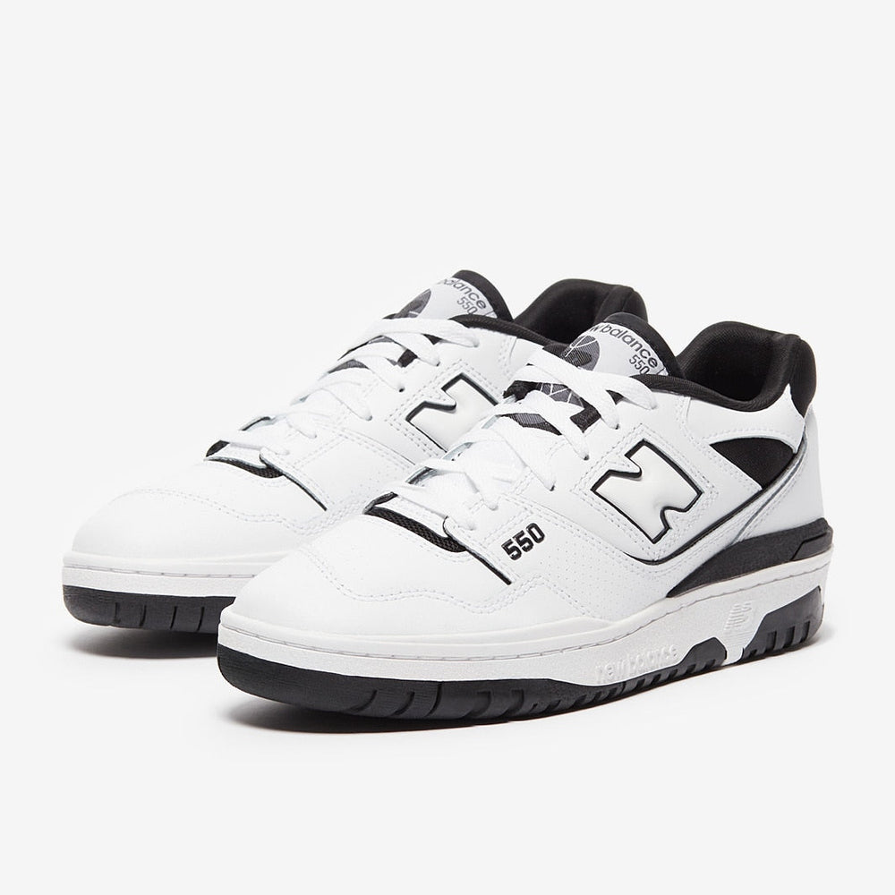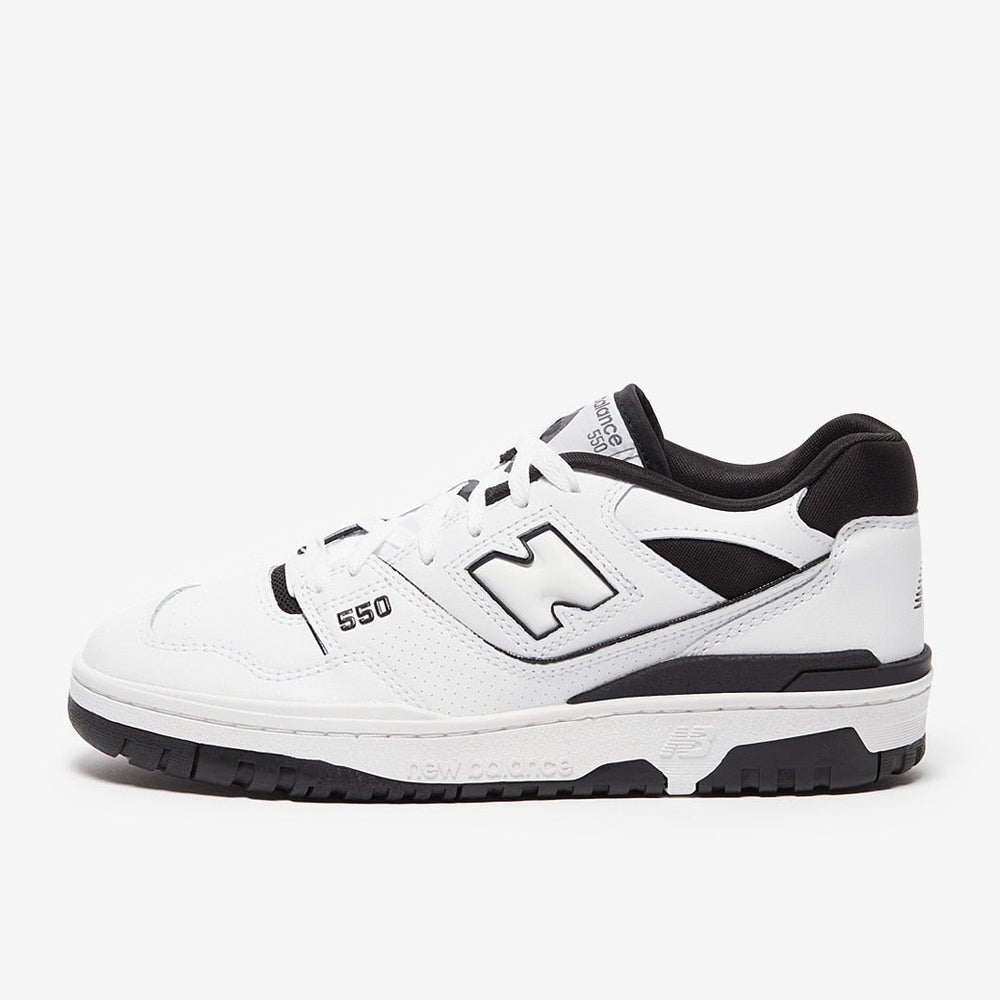 Step out in crisp, inspired style with the New Balance 550 in White/Black, carrying off some heritage NB details and design on a comfy leather upper with hits of breathable mesh.