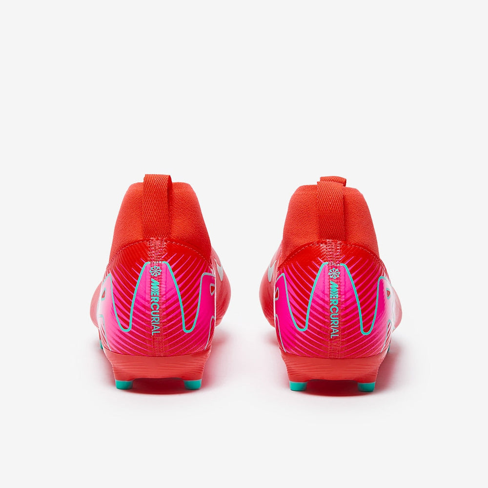 The ultimate expression of speed. Become untouchable on the pitch with Nike Kids Air Zoom Mercurial Superfly 10 Academy FG/MG football boots in Ember Glow/Aurora Green.