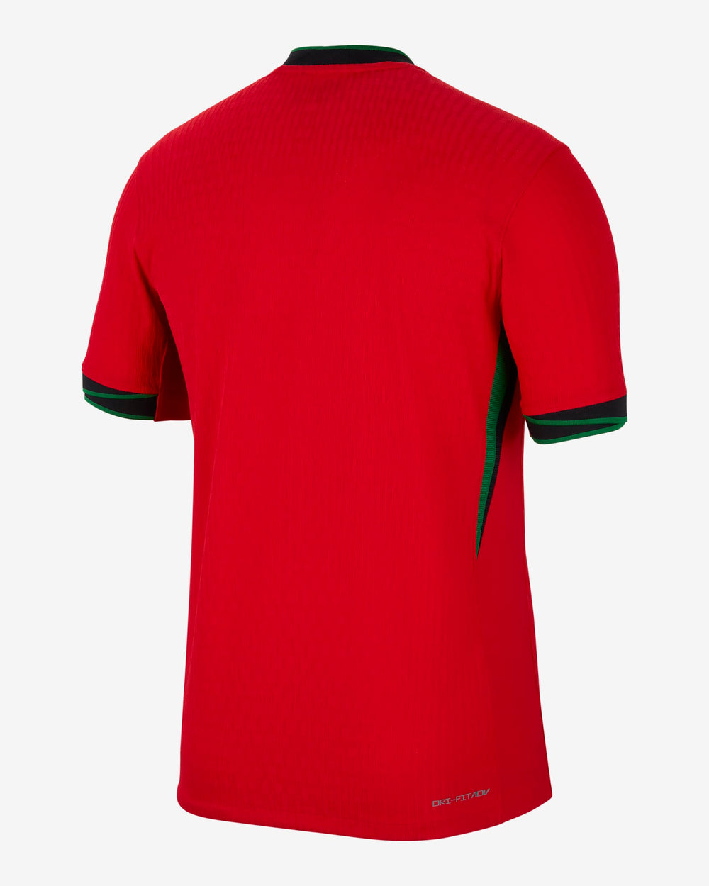 The 2024 Portugal Home kit honours a national heritage that has created one of the most recognisable on-pitch looks in the game. With vibrant colours pulled directly from the Portuguese flag, this kit is another in a long line of red and green Home shirts for the national team. Hidden details celebrate the connectedness and unity of their current squad as they step on to the European stage.